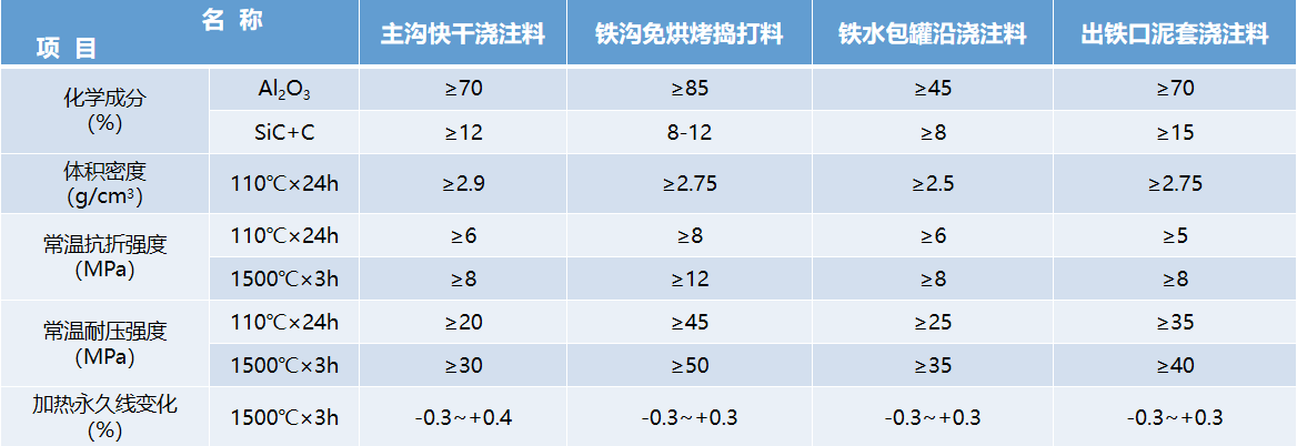 高爐鐵溝用澆注料系列